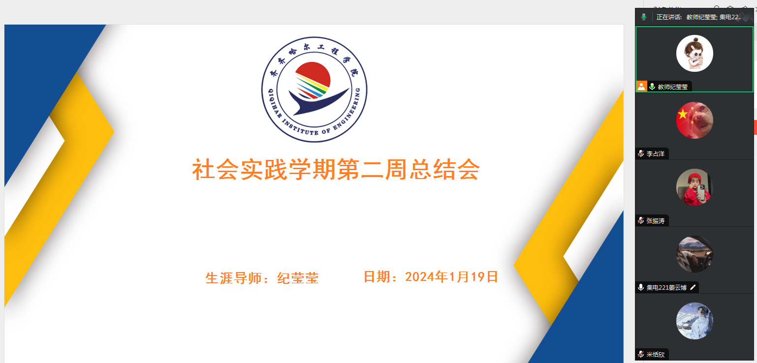 1月19日晚,纪莹莹老师组织学生召开社会实践学期第二周总结会,所带小组全员参与。