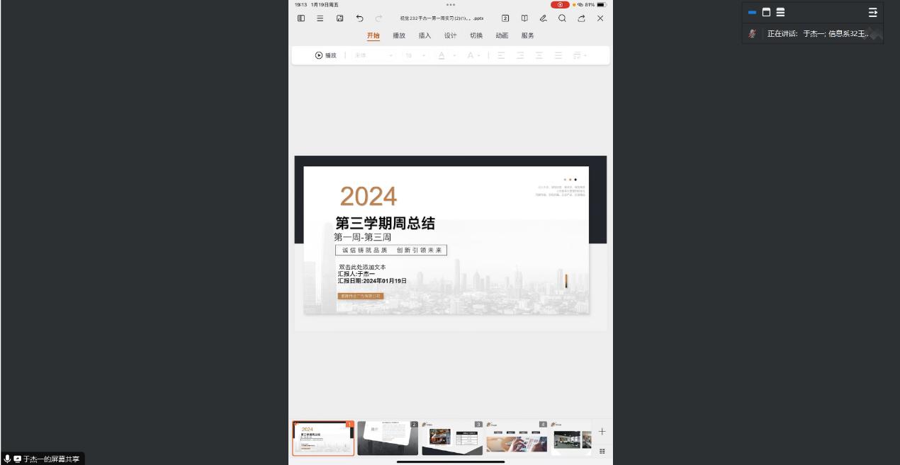 1月19日下午,王昀碧老师在腾讯视频会议召开第三学期第三周的工作汇报,视觉专升本232班36人参加。