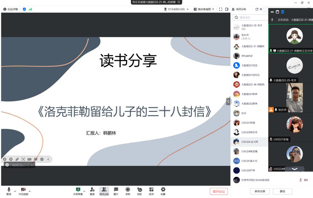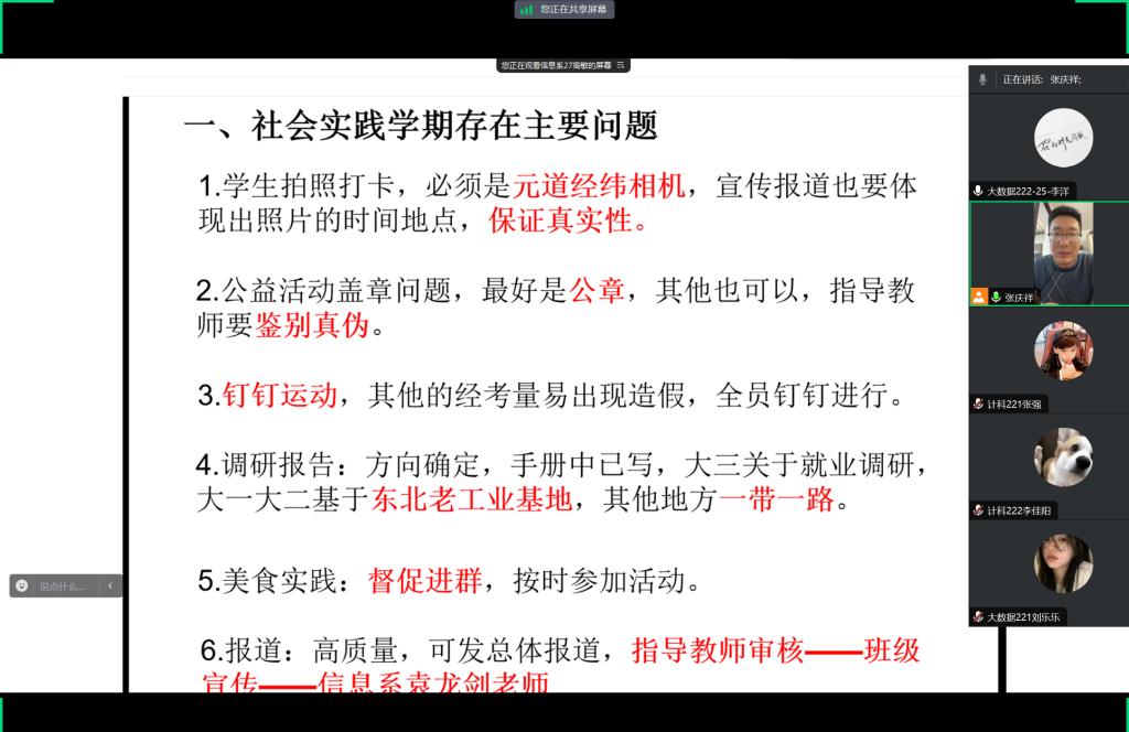 1月20日下午,信息工程系生涯导师张庆祥通过腾讯会议召开第四学期读书交流会并对第二周活动情况进行总结。