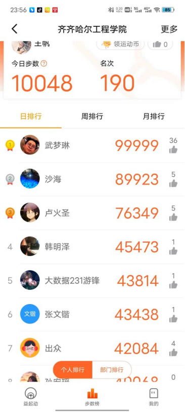 本周小组成员进行每日跑步,本次旨在通过实践操作,增强大学生的体魄,提高健身水平,在实践过程中,我发现了一些问题,小组成员因假期原因对每日跑步有所懈怠,还有人可能为了追求更高的数据而忽视身体的实际感受,从而造成运动过度的情况。经过沟通都得以有效解决。