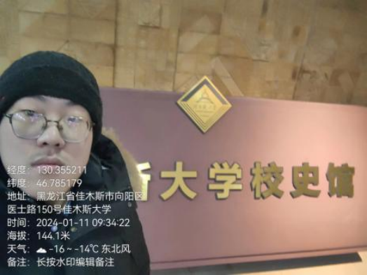 1月 11日上午,视觉211班侯延钊同学来到了佳木斯大学,参观了佳木斯大学的校史馆。
