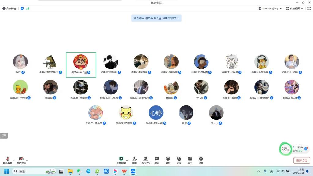 为全面落实我院校“社会实践学期”教学特色,进一步跟进学生社会实践学期的完成情况,1月15日下午,信息工程系动画专业通过腾讯会议召开“第四学期第一周情况汇报”会议。会议由金子涵老师主持,25人参加。