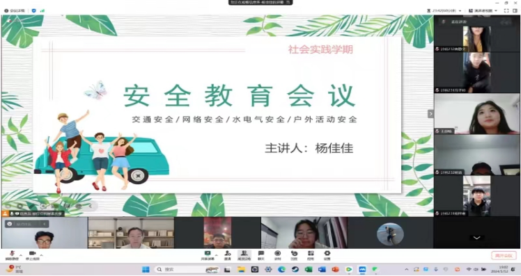 1月13日19时,杨佳佳老师通过腾讯会议召开2023-2024社会实践学期安全教育及第一周工作总结会议,由杨佳佳老师主持,社会实践学期学生25人全员参加。