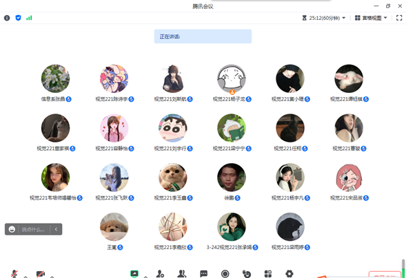 7月22日晚,视觉221班全体同学通过线上的形式召开腾讯会议,进行第五周的实习实践总结会,由张晶老师组织,共37人参加。