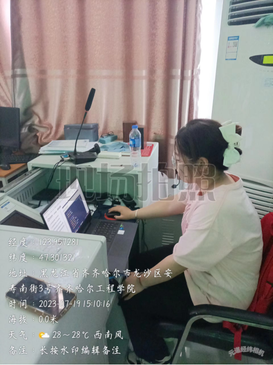 7月17日-19日,张佳怡同学在齐齐哈尔工程学院科技园开展专业实践,给学生们进行指导学习。