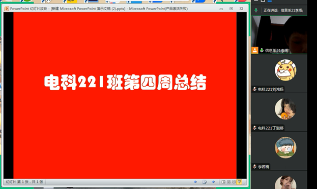 7月16日下午,电子科学与技术专业221班指导教师李阁老师通过腾讯会议召开电科221班第四周的总结会。本次会议由李阁老师主持,电科221班27名成员参加。