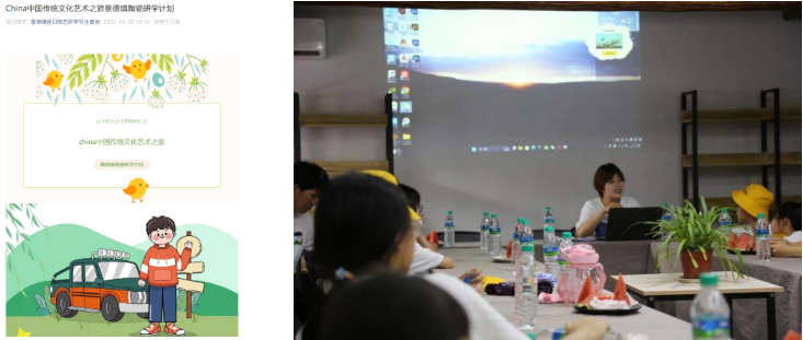 视觉专升本班222班苏玥,该生在景德镇逐日文化传媒有限公司实习,负责公司公众号编辑的工作,产出效果较好,目前公众号点击量破百,在企业导师和学校导师的帮助下,懂得了公众号如何运营、文案编写、公众号的排版、发布等问题。同时在实践过程中参与了公司的陶艺研学团队的课程,并被选为研学领队,带领小朋友们参观中国陶瓷博物馆、御窑博物馆、古窑等具有代表的各个景点,为小朋友们进行陶瓷历史和景德镇历史相关讲座。在研学活动期间收获良多,不只收获了学员和家长的肯定,更为自己积累了工作素材。