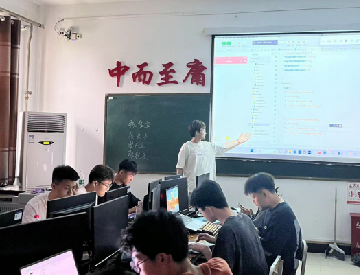 课堂开始,计科213班沈乘人学长首先为同学们演示了轮播图特效,并具体讲解了轮播图是由哪些代码构成的,随后,告诉同学们轮播图原理,定义几个区域,设置区域大小,为了更清晰的观看,给轮播图以及指示点编写颜色,设定滑动时间间隔,再设置一个指示原定,通过计算机的运算,所选择的区域开始滚动,并且无缝衔接。徐天宇同学在观看过后向沈乘人学长提出问题,沈乘人学长耐心解答,同学们自己操作练习并都有所收获。在课程结束后,沈乘人学长表示有问题要当场提出并及时解决,不要堆积,这样才能不断取得进步。