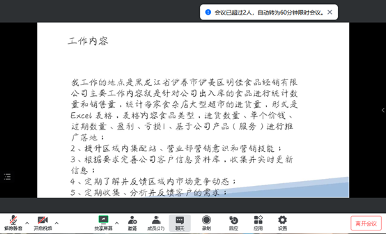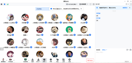6月26日晚,大数据212班在腾讯会议上召开专业实践第一周总结会议,会议由大数据212班指导教师周国梅主持,大数据212班33人参加。