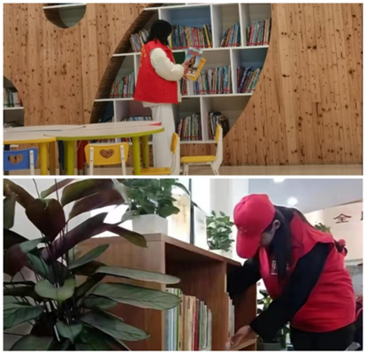 首先,全组聚集在图书馆门口,等待组长分配工作任务。其次,由小组长分配计科212班夏畅同学、计科211班苑飞洋同学及协会其他成员负责整理书架上的书籍;计科211班李月茹同学和计科212班高露露同学及协会宣传部负责打扫卫生工作;计科213班张乘誉及协会其他人负责规劝馆内不文明的行为。最后,在服务期间基本都是站着执行任务,有些辛苦和劳累,但是组员们没有提一声累了,坚持不住了,大家都坚持到了最后。