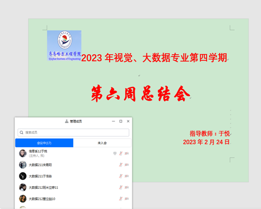 2月24日,于悦老师通过腾讯会议组织召开第四学期总结会议,本次会议由于悦老师主持,全体小组成员参加。