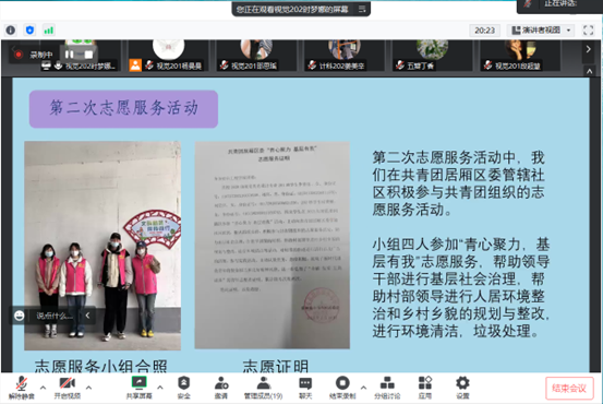 2月20日,张晶老师组织学生开展了第四学期第五周汇报,本次会议由张晶老师主持,所指导的五组同学按时参加会议。
