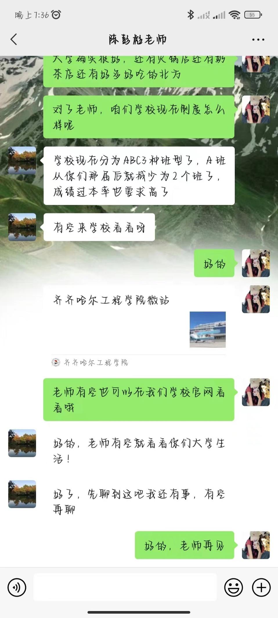 2月13日——2月19日,刘乐乐小组进行了母校回访,组长刘乐乐,组员分别为刘浩、马海岚、李洋、郑仲阳。
