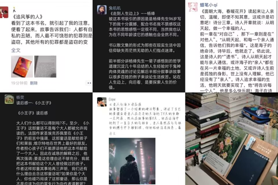 首先面对每日的阅读任务,小组成员均认真完成,会在阅读过程中做标注,摘抄好句好段,进行局部篇章总结,写出自己的收获感悟。其次,读书交流是我校第四学期的一项必修内容,目的是加强学生对事物的看法和认知,随着科技时代的到来,人们大多习惯通过打游戏,刷视频,看小说,看漫画等网络活动来打发空闲时间,已经很少能看到那些读纸质书,看报等的场景了。最后,张越同学认为,书中自有黄金屋,读书可以平静情绪,能够放松紧绷的自己。读书看起来是一件可有可无的事,读一天两天也不会感觉到有什么变化,但是过了一年两年你就会发现读书的人和不读书的人或许已经在无形中产生了一道无法逾越的鸿沟。