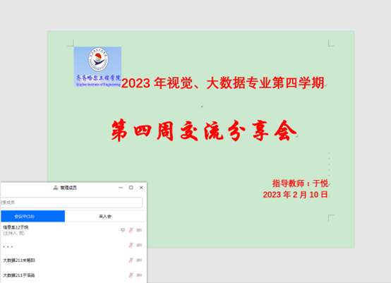 2月10日,于悦老师组织学生线上召开第四学期汇报会,此次会议由于悦老师主持,全体同学共同参加。