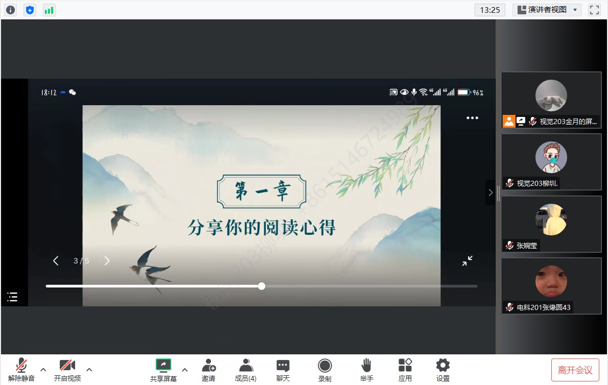 2月13日,金月小组通过线上会议的方式进行第二次读书交流活动,本次会议由组长金月主持,小组成员积极参与活动,分享自己近期阅读的书籍。