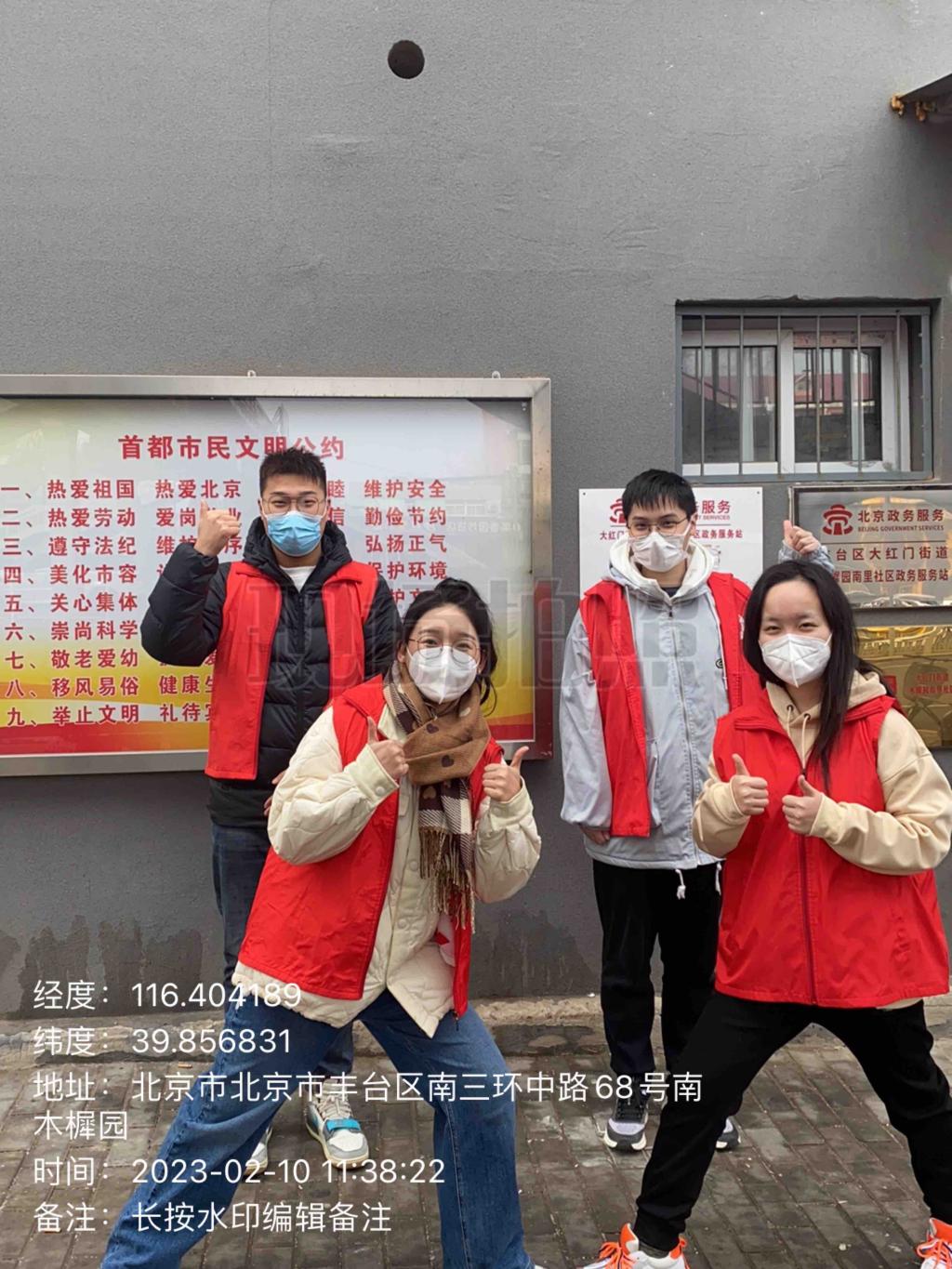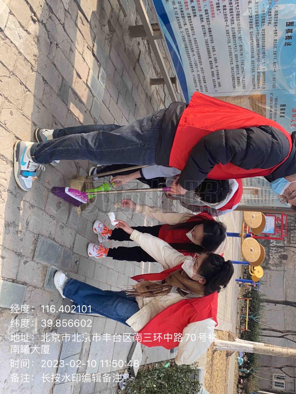 经过小组成员线上会议讨论,将志愿服务中可能存在的问题解决后,决定2月10日聚在北京进行志愿服务。在志愿服务期间,小组成员进行了社区快递箱消毒、进行反诈骗宣传、社区运动器材满意度调查、清理草坪垃圾等工作。收获了社区感谢信。在志愿服务结束后,小组成员进行了线上会议,对此次活动进行了反思与总结。