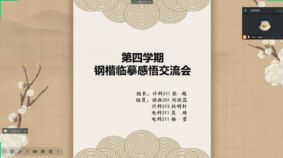 通过这次的钢楷临摹感悟交流会议,小组成员们明白钢楷临摹不仅仅是一项必修内容,更是传承中华传统。今后小组对钢楷临摹会更加认真的完成。