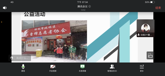2月3日,王昀碧老师组织学生线上召开第四学期汇报会,此次会议由王昀碧老师主持,全体同学共同参加。