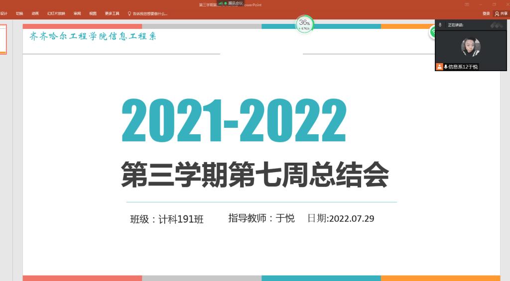 2022年7月29日,计科191班线上举行了第三学期专业实习总结会,会议由指导老师于悦老师主持,计科191班38人全部参加。