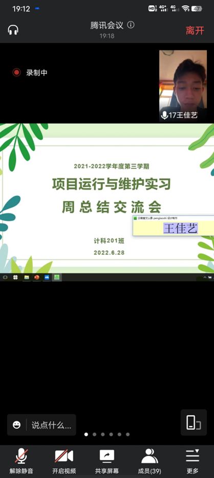 6月28日晚,计科201班在腾讯会议上召开线上第三学期“项目运行与维护实习总结交流会”。会议由第三学期指导老师杨静霞主持,计科201班42人参加。