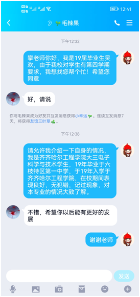 2月14日,吴欢小组展开母校回访活动,此次活动是为了向老师介绍自己和相关的学业,我个人向老师展开陈述,并取得良好的结果,顺利完成本次活动。