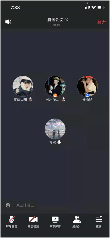 2月14日下午,任雨欣自傲组通过腾讯会议开展了线上读书交流会,会议由组长任雨欣主持,组员郭原野,孟雯琪,孙宇航全员参加。