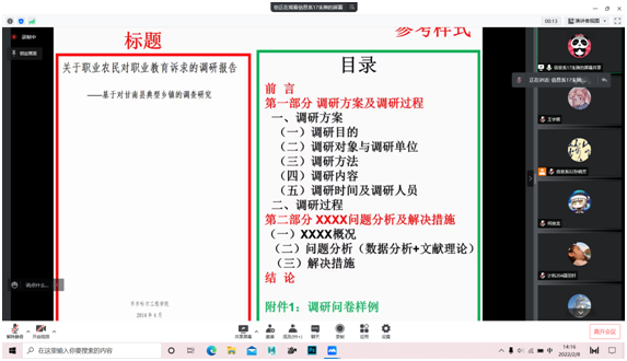2月8日,朱琳老师通过腾讯会议为同学们进行调研报告项目的讲解。我组成员积极参加。