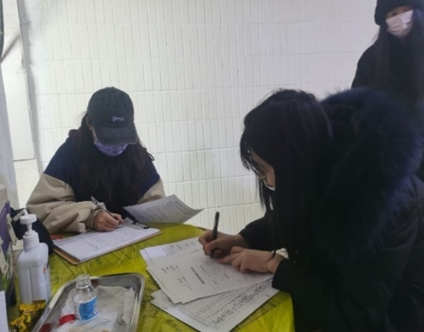 首先,为了加快推进新冠疫苗接种工作,在第二周的志愿者实践中,小组成员前往社区协助疫苗的接种工作,积极向小区居民宣传国家疫苗接种政策,其次我们对接种疫苗群众人员进行引导,时刻提醒要保持安全距离。帮助年龄较大人员进行身份信息登记,细致做好小区居民的证件查验,记录疫苗接种情况,检查健康码是否异常等工作同时我们会提供留观提示,时刻保障着疫苗接种工作的顺利进行。面对一些对疫苗接种有疑虑的居民,我们会向他们科普疫苗接种知识,分享感受,打消居民的疑虑。其中,由于天气原因,路面较滑,一些老年人腿脚不便,我们协助社区做好登门对老人疫苗接种的准备工作。