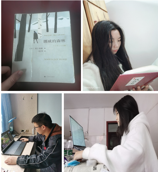 组长陈程依据网上在视频网站学习到的PS技巧并运用在软件上,进行ps的基本运用的练习,目前已掌握一部分基本技巧。组员黄靖宇,也根据自己专业所需,结合自身兴趣,阅读了一些小说。村上春树的《挪威的森林》是最能打动我心弦的小说了,黄靖宇评到,它用平静的语言娓娓讲述已逝的青春,讲述青春时代的种种经历,体验和触感,那是经历过青春快车沿途的一番风景。这样的读后感对他来说,是一种宝贵的经验,在他以后的动画创作中,会有莫大的帮助。组员刘芳铭据自己的兴趣阅读了《红楼梦》。组员李虹宇在电脑上认真查阅资料,弥补英语学科有关知识,还查阅了一些有关四级考试的书籍,并为四级考试做充足准备。她认真学习,刻苦练习,在线上学习会上,与我们一起分享自己的不足,也为我们解决了不足,带动我们一起进步