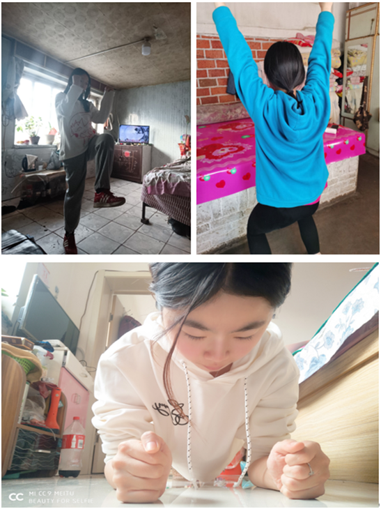 2021年1月19日,GY—113小组成员吕游,刘欣蕊,王文博开展了“停课不停练”的居家锻炼活动。