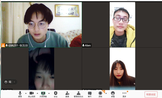 1月11号上午,本组成员动画201粱俸绮、张浩羽、黄蕾与财管202萧佳玉受故于疫情原因在网上召开关于第四学期活动开展讨论会,由组长张浩羽主持,全组四人全员到齐参与。本次讨论会说明了由于此次疫情导致无法参与社会实践的情况,并对此怎么处理的问题有了大致的阐述:组长也再次说明了居家方案的具体内容。对于启动备选方案后,各组员该做什么,该达到什么程度,本组都进行了一一的分配与规定。小组成员也都明白了本次第四学期的学习内容,达到了预期的效果。