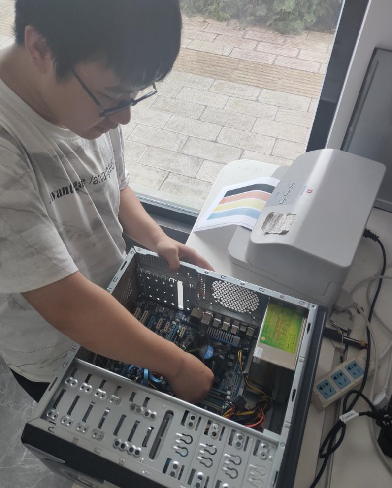 组长杨佳龙:我的工作是维修和保养一些电子硬件,为外租打印机的企业连接好打印机并调试,同时上门提供技术服务。对于我来说这个工作需要大量的精力和专注度,因为企业选用的品牌机的结构会有许多不同,在维修时需要更加小心,这次经历让我在硬件方面有了更多的认识,获益匪浅,开始外出提供技术服务时都有老员工带领,到后来一个人去,我的各方面社会交流能力得到了锻炼。