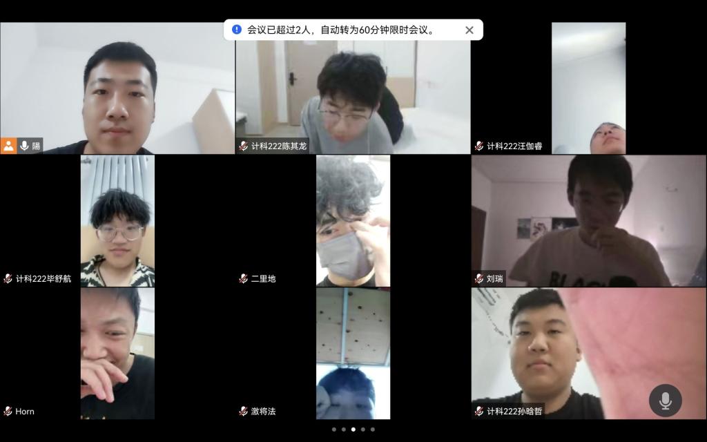 6月29日下午,计科222班于线上开展专业实践学期第二周总结会对第二周实践活动进行总结,辅导员和参加实践周的全体同学参加会议。