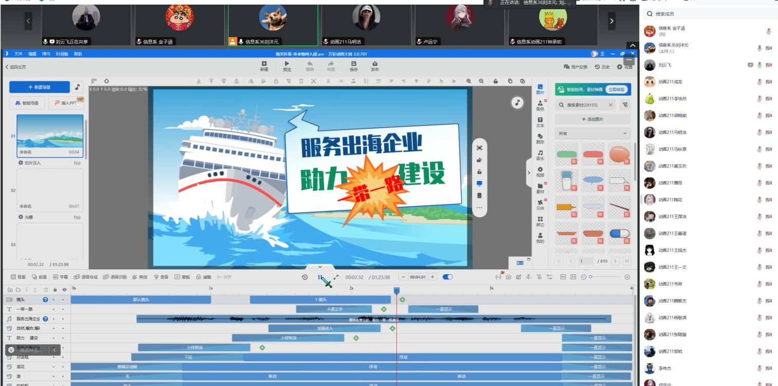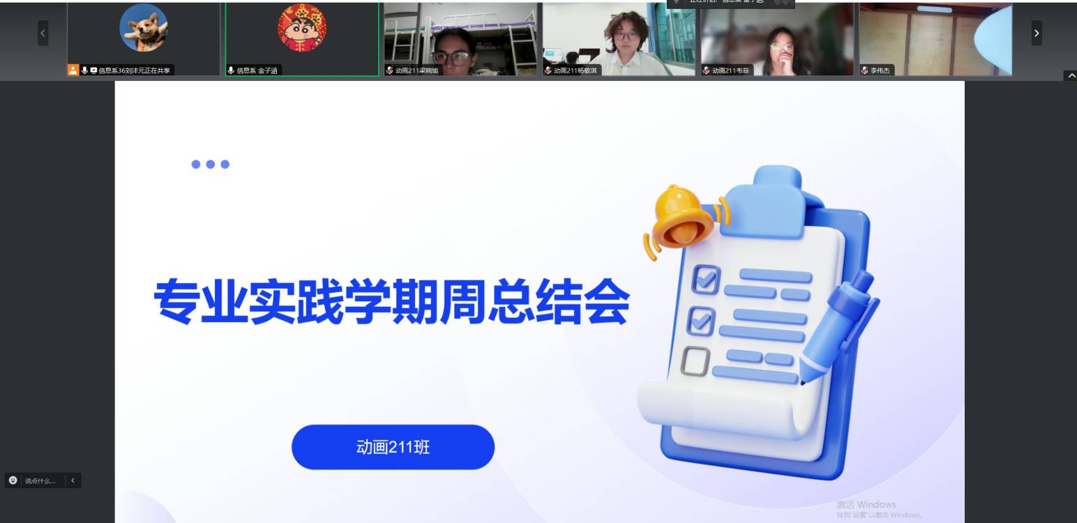 2024年6月28日动画211班召开了“专业实践学期周总结”会议。本次会议由动画专业教师刘沣元、金子涵共同主持。动画211班30位同学共同参加。此次会议旨在对这一学期的专业实践进行进行阶段性的总结和评估,以及讨论下一阶段的学习计划和目标。