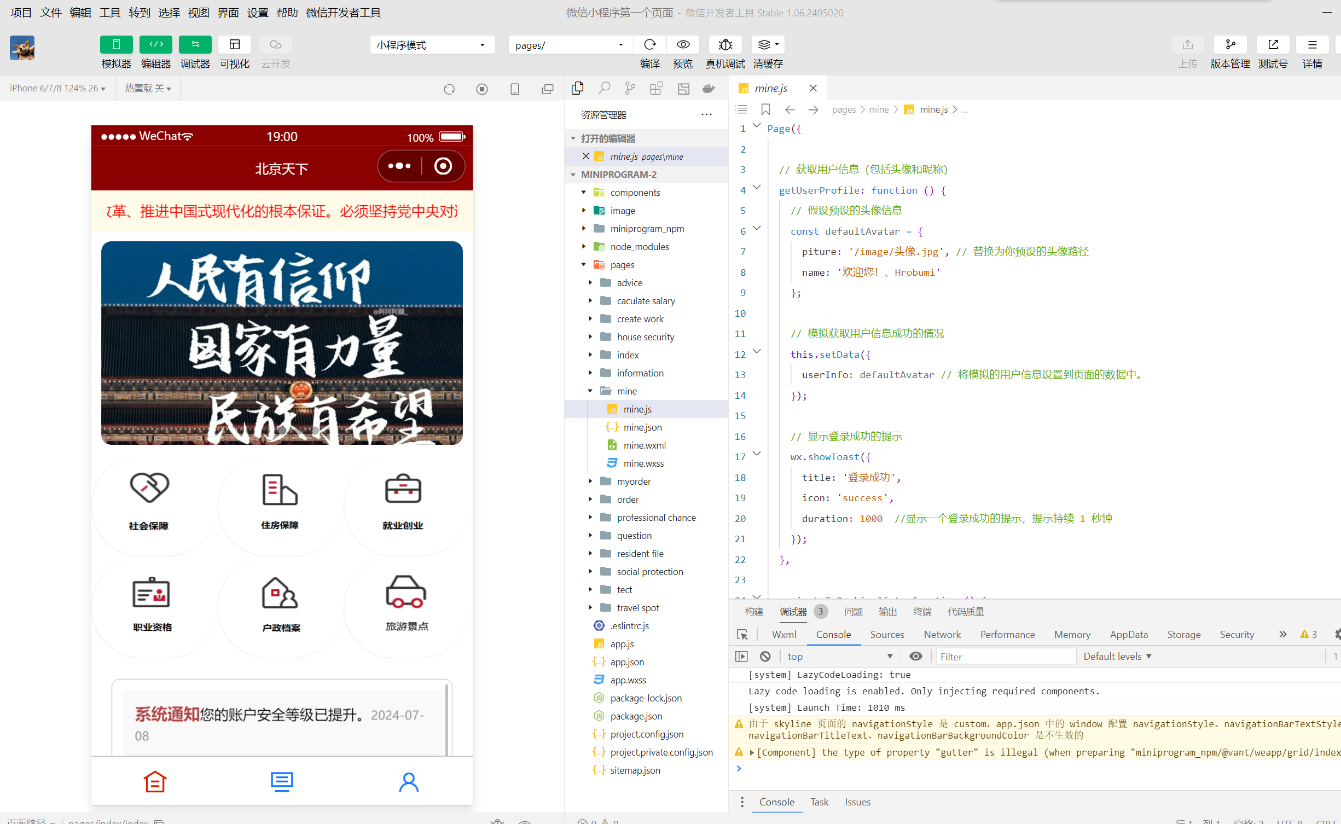 在齐工软件开发有限公司的专业指导下,卢星澎同学成功开发了“北京天下一键办事”微信小程序。该项目经历了从初步构想、页面设计到功能完善的全过程,最终呈现出一个功能齐全、界面友好的应用。在梁一鸣讲师的悉心指导下,该项目成功实现了用户注册登录、服务预约查询等核心功能模块,并巧妙运用Vant组件库等技术优化了用户界面,极大提升了用户体验满意度。