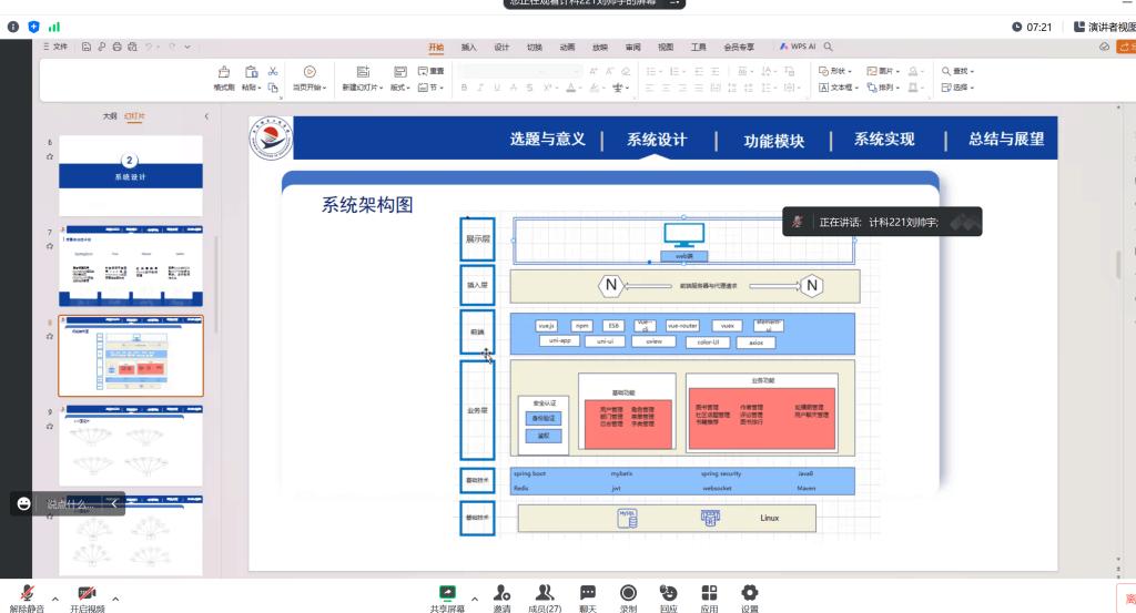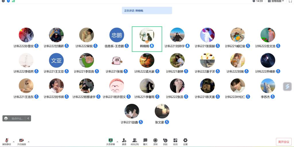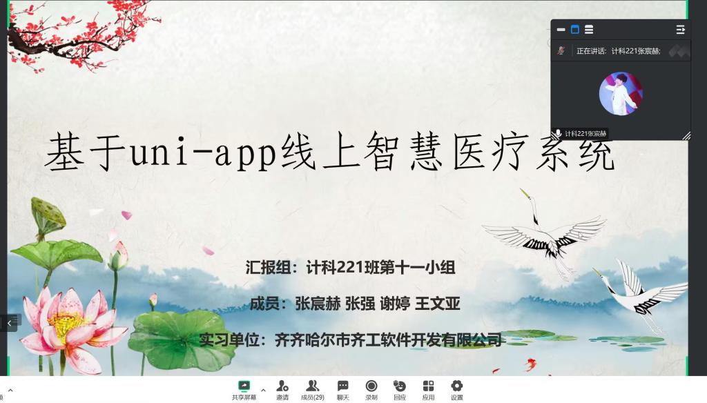 8月2日下午,计科222班线上召开专业实践学期答辩会议,本次会议由指导教师韩楠楠、王忠鹏老师主持,25名同学参加此次会议。