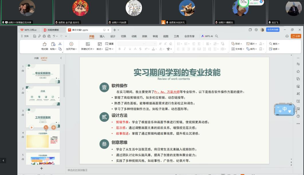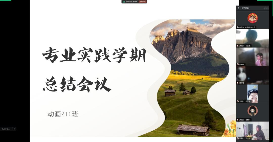 2024年8月7日晚间,动画211班于腾讯会议上召开了“专业实践总结会议”。此次会议由动画211班的专业教师刘沣元和金子涵主持,旨在总结本学期的专业实践活动,评估学生的学习成果,并为下一步的学习和发展提出意见。