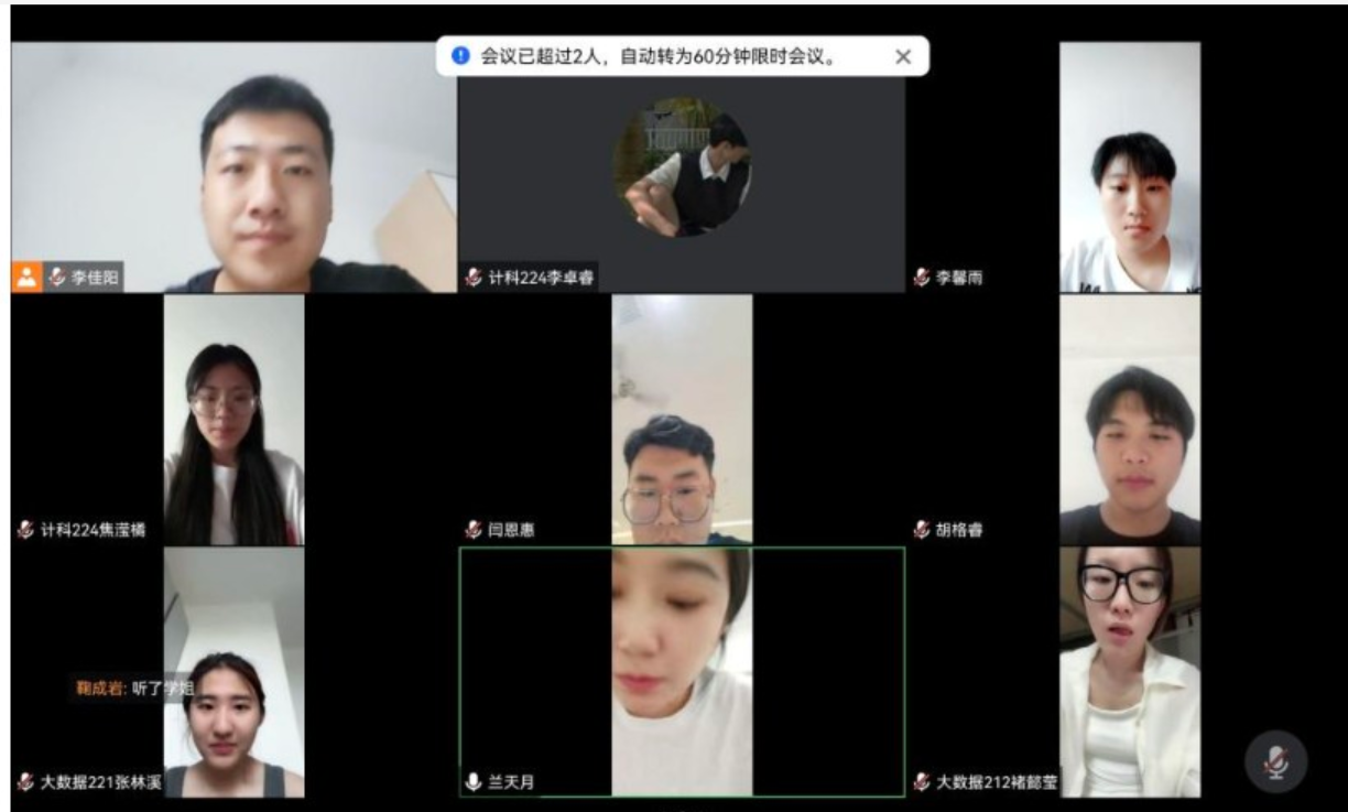 6月29日,计科223班利用腾讯会议召开了第二周专业实践学期总结会,此次会议旨在回顾和总结这一周同学们在专业实践中的学习成果和经验,为接下来的实践活动提供有力的指导和借鉴。会议由杨学仁老师主持,计科223班全体同学参加。