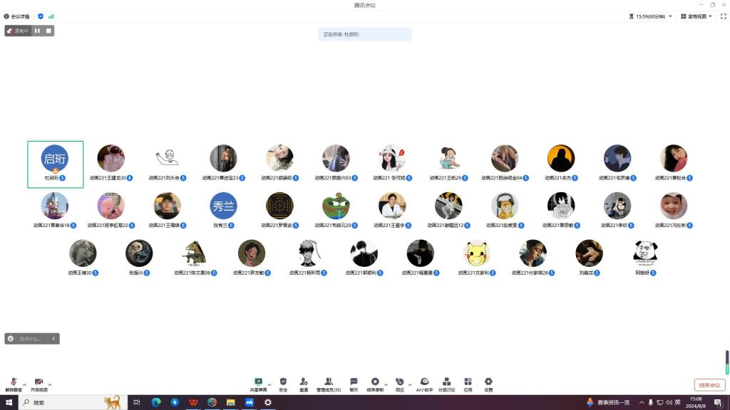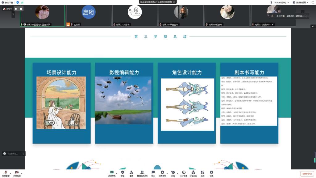 8月9日上午,杜启珩老师通过腾讯会议召开第三学期总结会。会议由杜启珩和张振兴两位老师主持,动画221班全体参加。