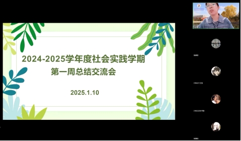 2025年1月10日,杨静霞老师召开了社会实践学期的第一周总结交流会,她负责指导的24名生涯学生分成六组,进行了第一周任务完成情况汇报和展示。