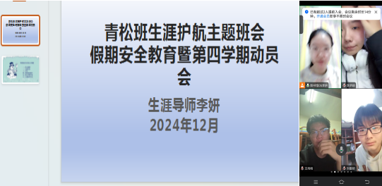 2024年12月30日,生涯导师李妍召开纵向班级主题班会,使用腾讯会议开展线上交流,李妍老师主持,生涯学生全员参加。