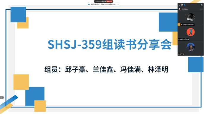 1月11日下午,在腾讯会议上,由邱子豪组长带领的 SHSJ - 359 小组成功开展了一场别开生面的读书讨论会。小组成员共赴这场知识与思想碰撞的交流盛会。