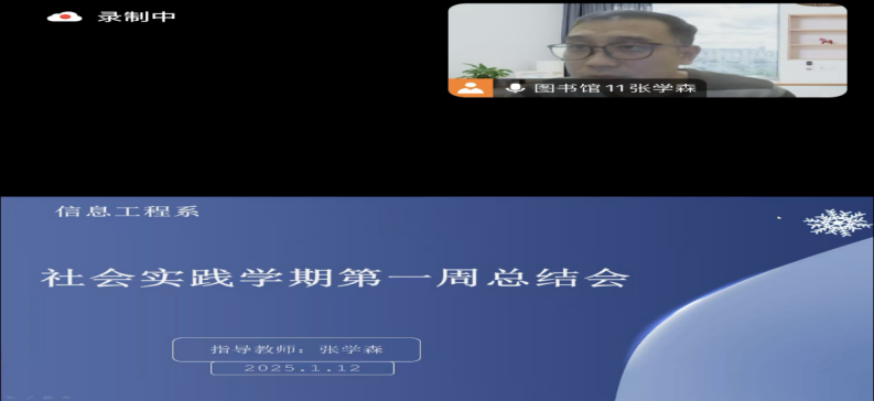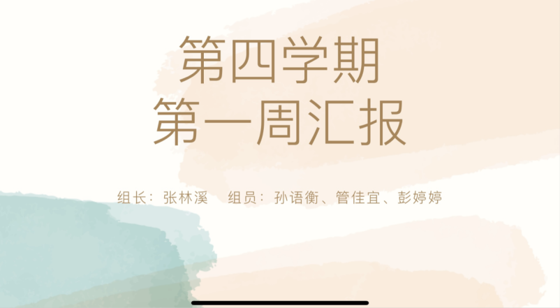 1月12号,第四学期SHSJ-354小组在腾讯会议进行第一周学习任务总结汇报,由组长张林溪制作PPT,组长张林溪来汇报,组员孙语衡、管佳宜、彭婷婷参加。