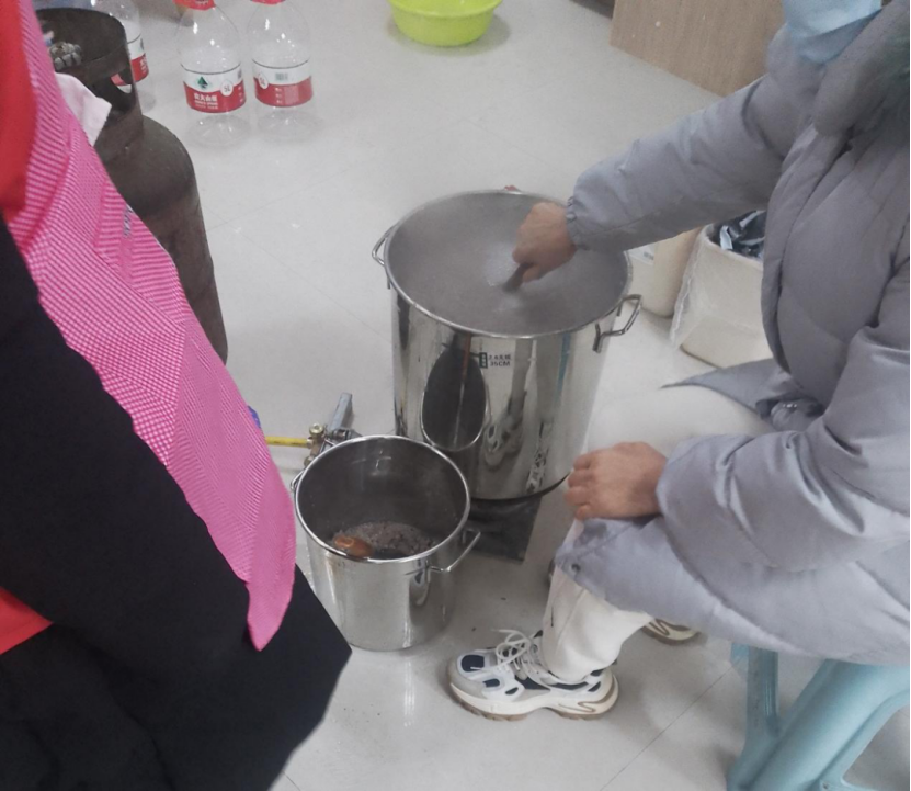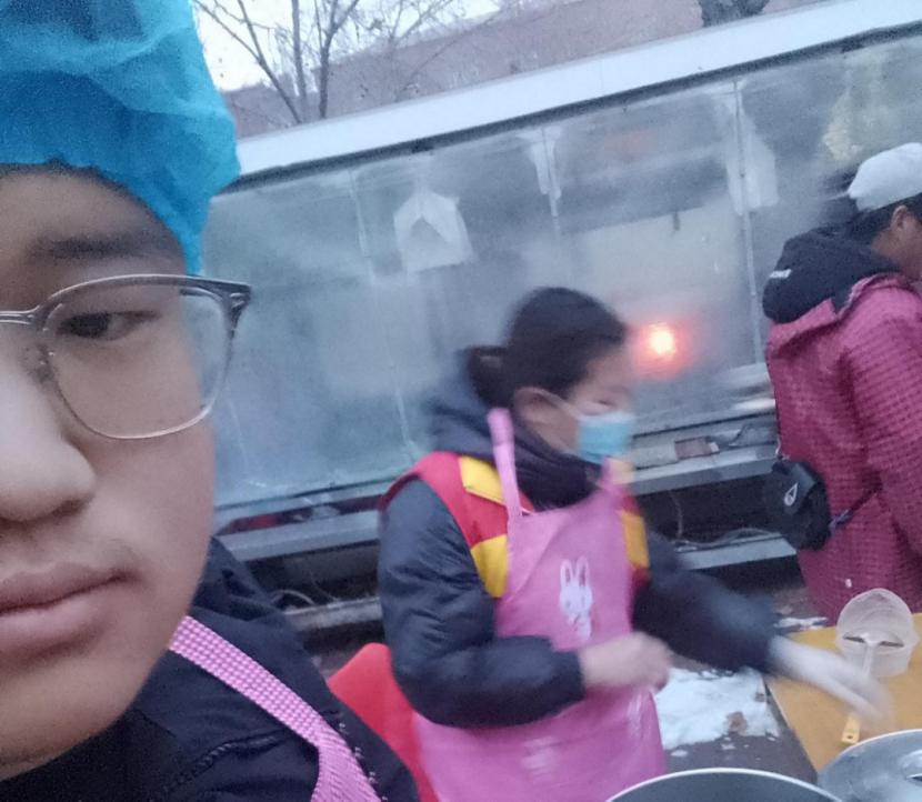 1月7日早上,大数据221班睢晨曦同学在河南省濮阳市南乐县北环志愿服务中心,参加腊八节为环卫工人奉粥的志愿活动。