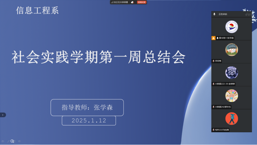 1月12日晚上,生涯导师张学森使用腾讯会议召开社会实践学期第一周总结会。