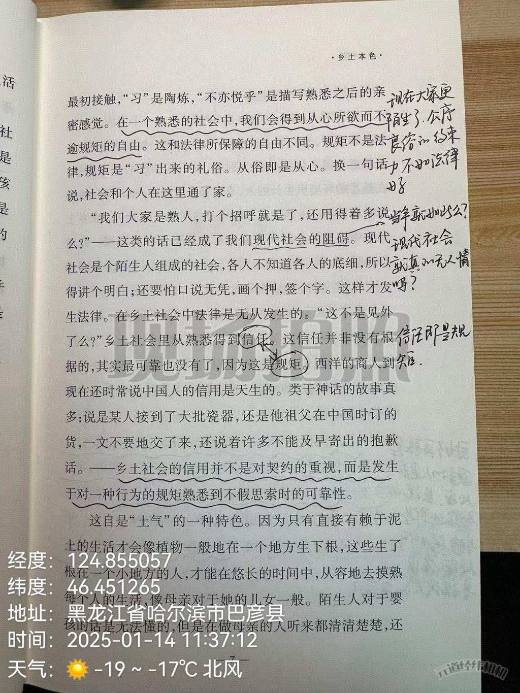 书中“乡土本色”让吴雪岩明白,土地是乡下人的命根子,这种对土地的依赖造就了稳定的村落生活。“差序格局”更是精妙,用波纹作比,生动展现了以自我为中心、亲疏有别的人际关系网络。而“礼治秩序”揭示了乡土社会靠传统礼俗维持秩序的特点。