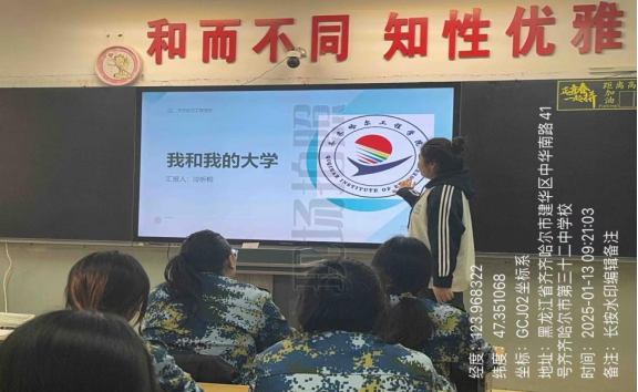 2025年1月13日,信息工程系电子商务专业冷昕桐同学,回到了母校齐齐哈尔市第三十二中学开展了一场别开生面的回访交流活动,不仅为学校的学生介绍了我校,而且也为在校学子分享学习经验、传递大学的所见所闻,在冬日为母校增添了一抹温暖与活力。