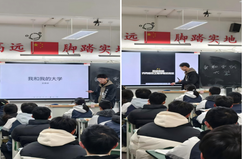 史鑫健同学主要为学弟学妹们介绍了齐齐哈尔工程学院新建的北校区,向他们展示了相关宣传视频,并将自己的大学生活与学弟学妹们分享交流。史鑫健同学表示,各位想要去北方读书的学弟学妹们欢迎报考齐齐哈尔工程学院,齐工程也将诚挚欢迎各位的到来。同时,为学弟学妹们解答了一些关于大学学习生活的问题与常识,让学弟学妹们提前了解大学生活,助力他们以后更好的前行。活动结束后,同学们都送上了热烈的掌声,并期待下次相见。