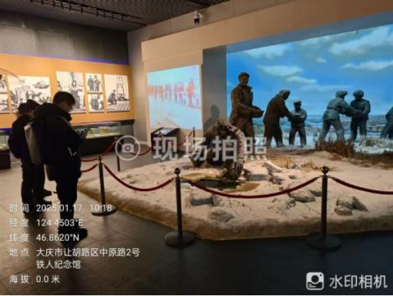 步入馆内,在专业讲解员的引领下,刘书琪开启了一段触动心灵的历史探寻之旅。馆内陈列着琳琅满目的珍贵历史照片、详实的文献资料,以及铁人王进喜生前使用过的各类工具与物品。这些展品犹如时光的钥匙,生动地再现了王进喜从一名普通石油工人,一步步成长为举世闻名的 “铁人” 的艰辛历程。众多展品之中,最能触动人心的,当属王进喜带领工人 “人拉肩扛运钻机” 与 “破冰取水保开钻” 的场景复原。面对艰苦恶劣的工作环境和极为简陋的设备条件,王进喜毫无惧色,毅然以身作则,带领工人们凭借最质朴的方式,将沉重无比的钻机搬运至井场。在寒风凛冽的冬日,为确保钻机能够正常运转,他毫不犹豫地纵身跳入冰冷刺骨的泥浆池中,用自己的双手奋力搅拌泥浆。这些逼真的场景复原,让刘书琪仿佛身临其境,深切体会到铁人王进喜为了国家的石油事业,不惜奉献一切的崇高精神。通过此次近距离的参观学习,刘书琪真正领悟到铁人精神的深邃内涵。